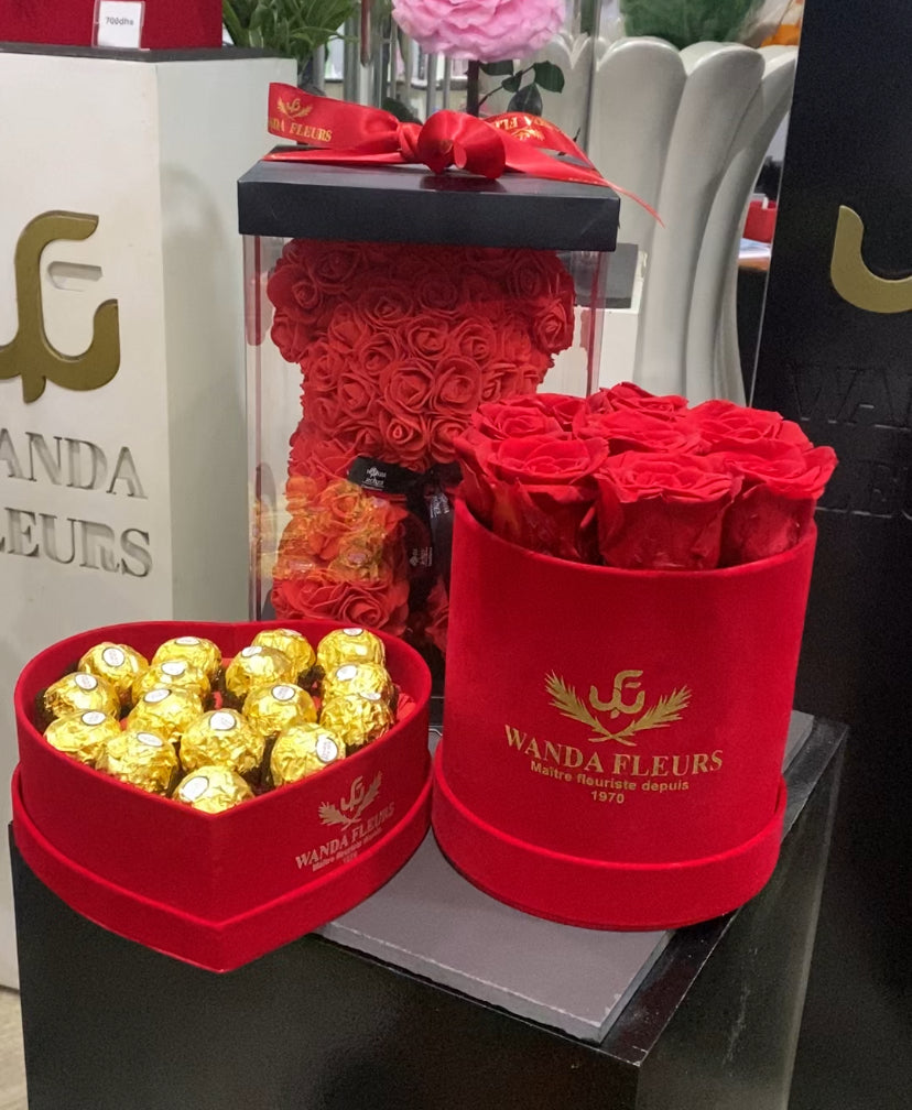 Ourson en Roses avec sa boite