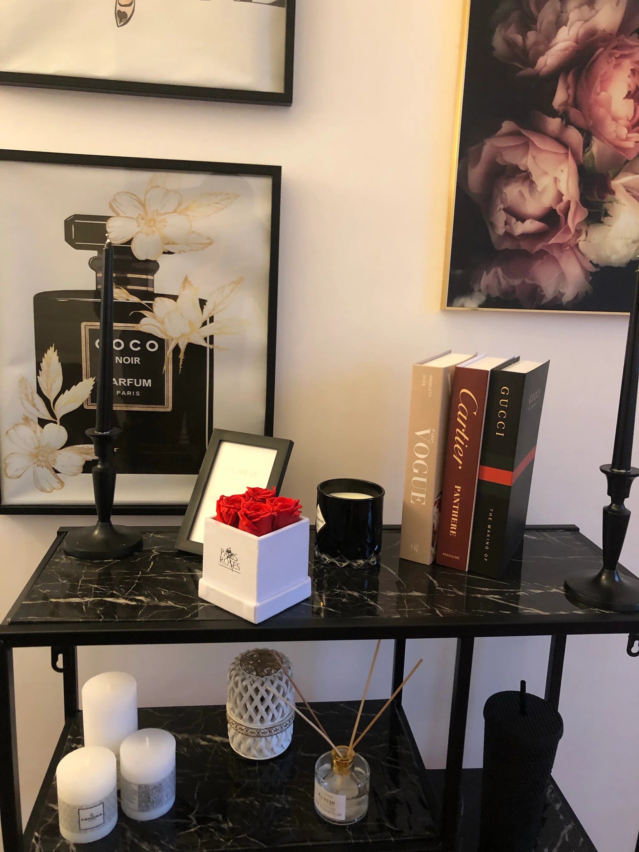 Bouquets rond de rose éterenlle rouge et blanc ( L )