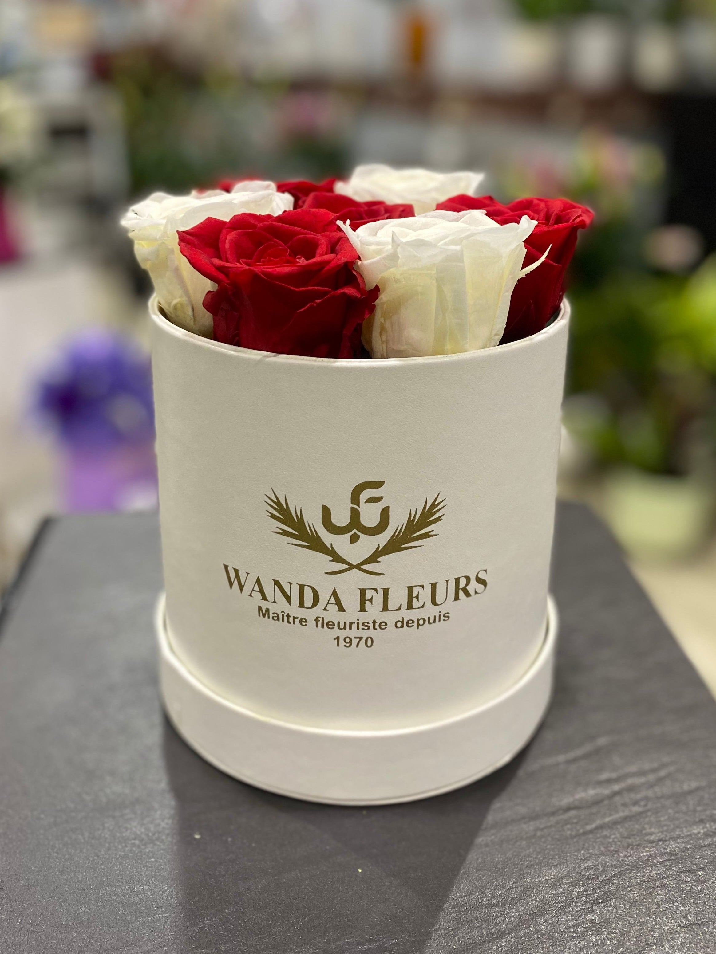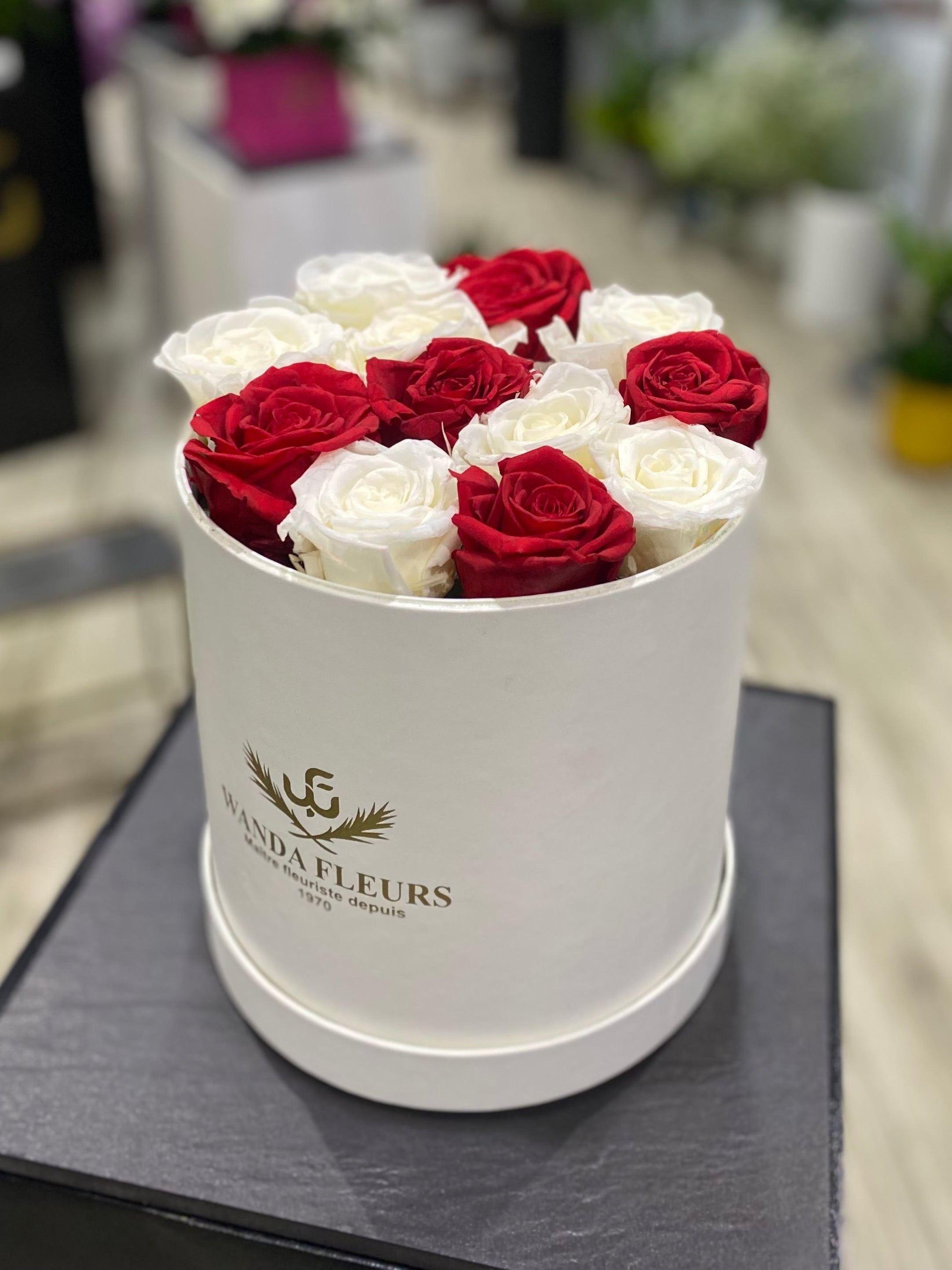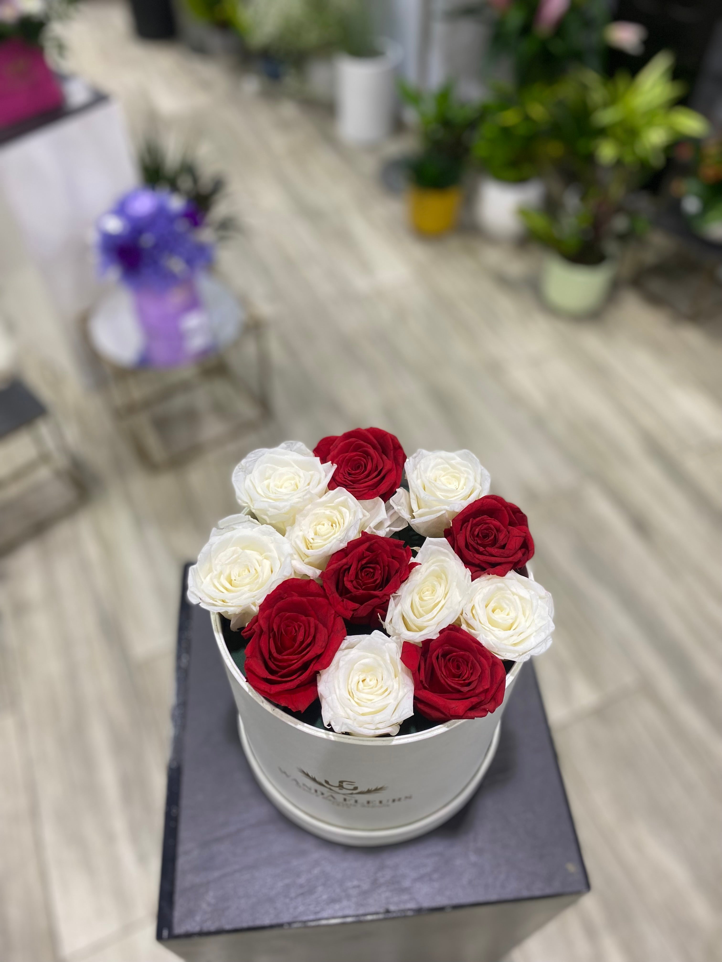 Bouquets rond de rose éterenlle rouge et blanc ( XL )