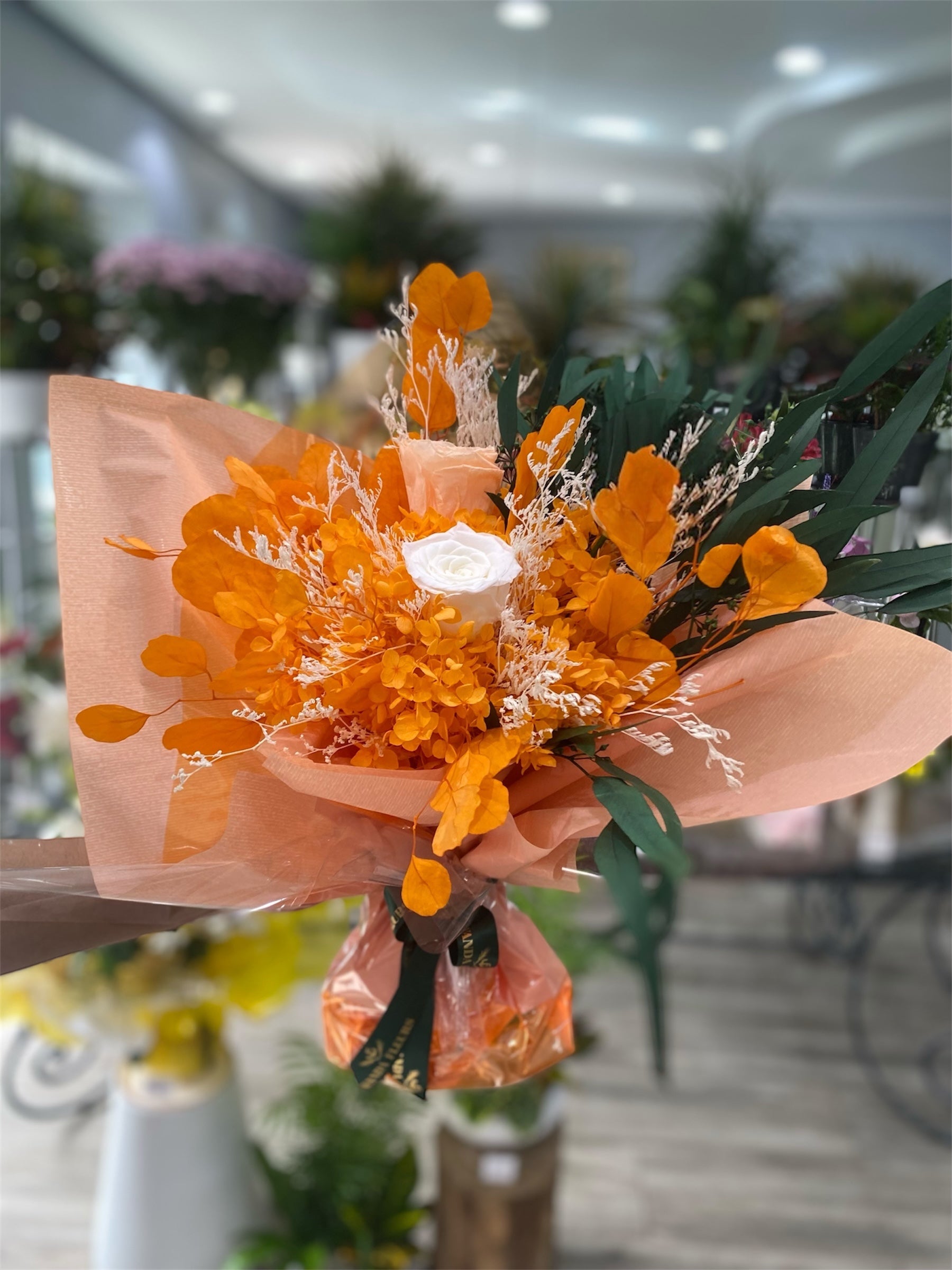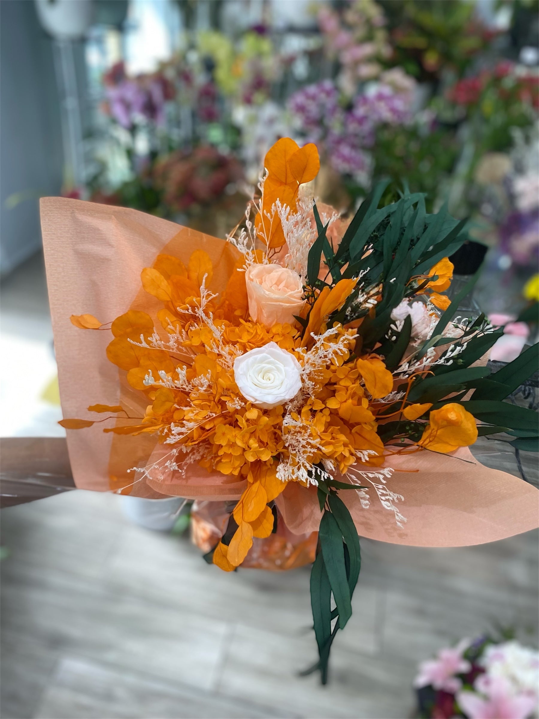 Bouquets de fleurs naturel éternelle orange saumon