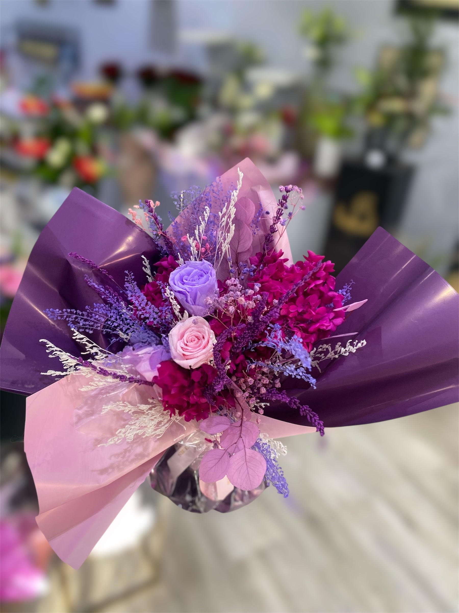 Bouquets de fleurs eternelle mauve et violet