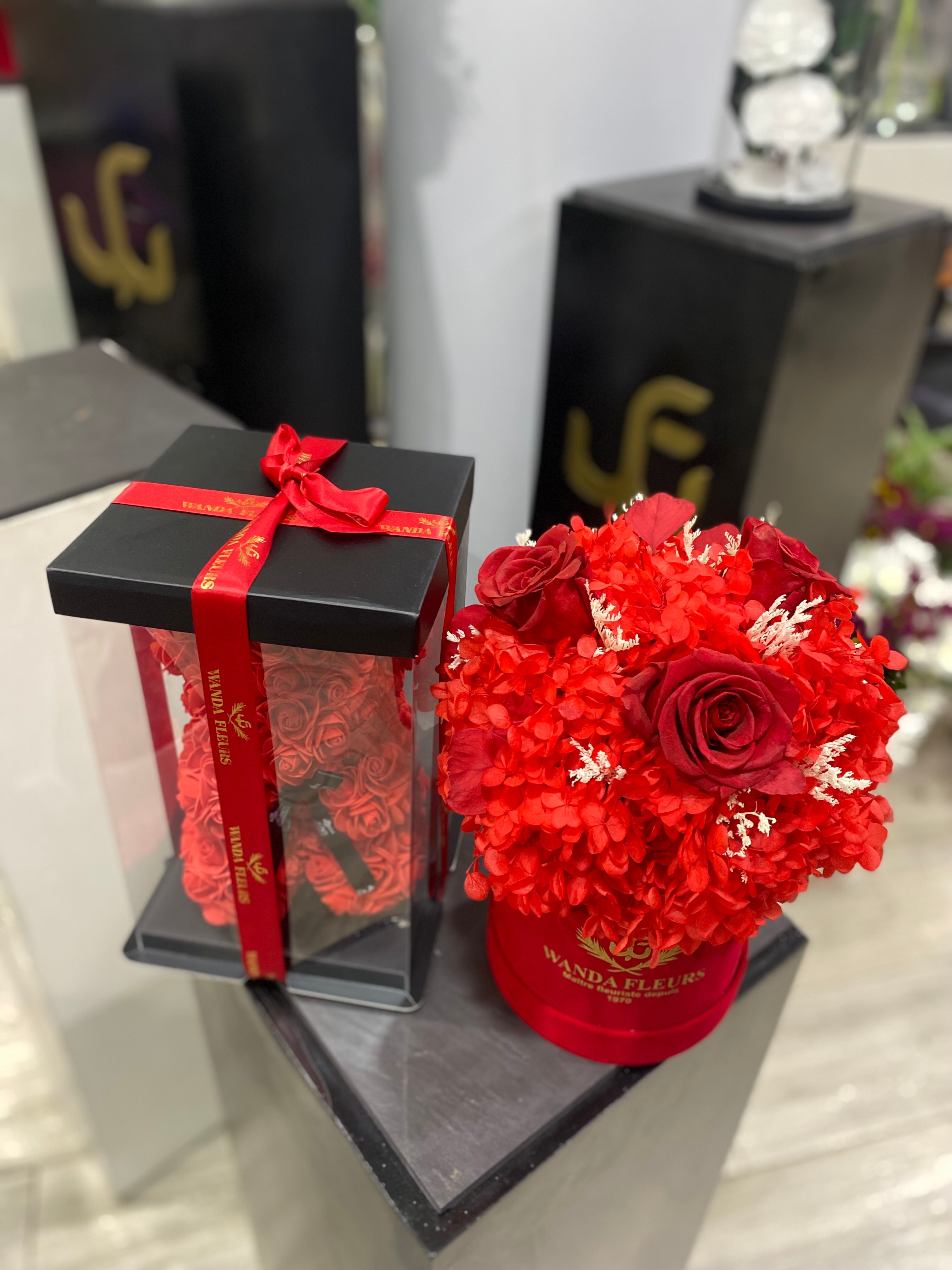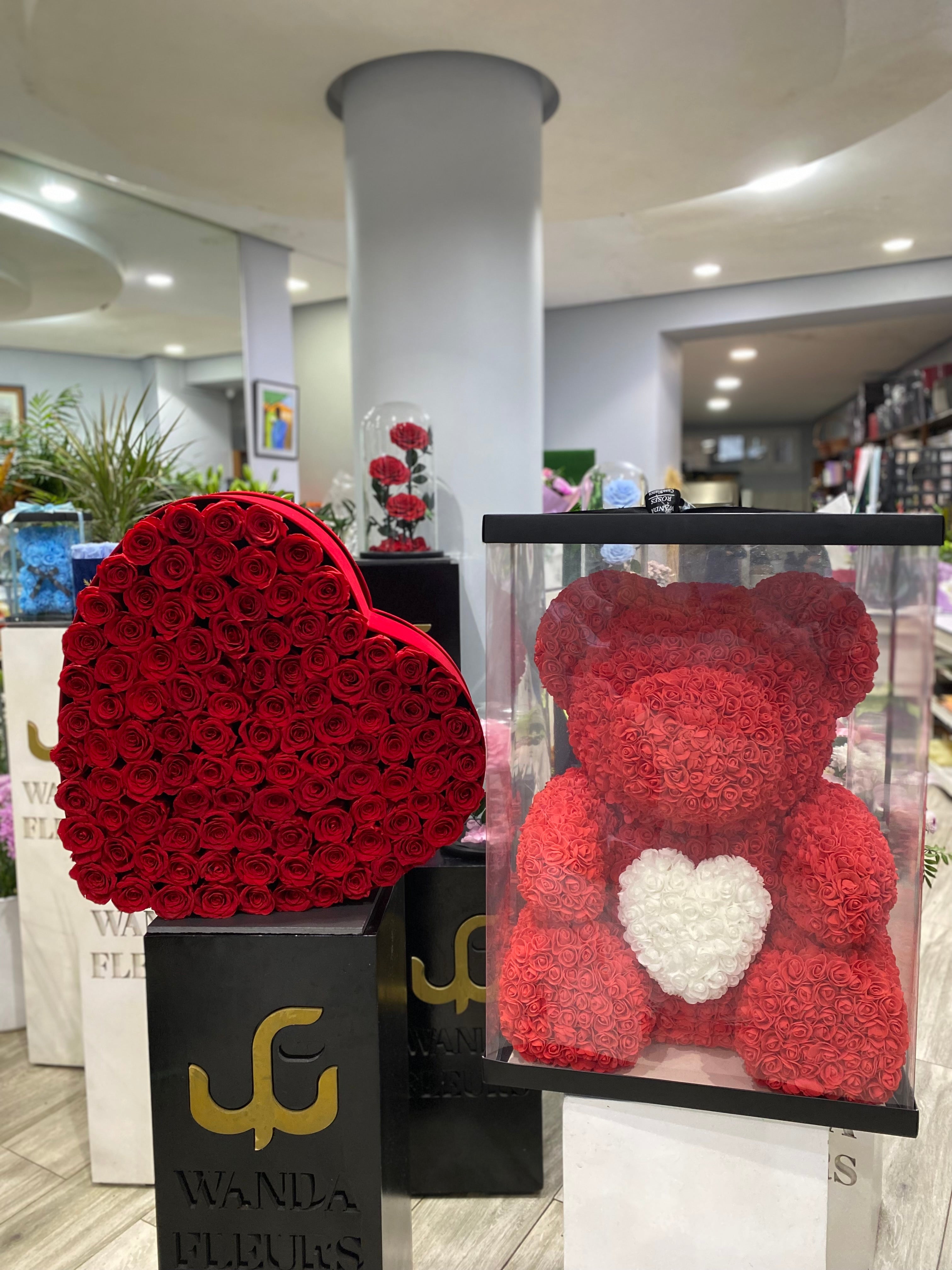 Bouquet roses éternelle rouge plus ours en roses
