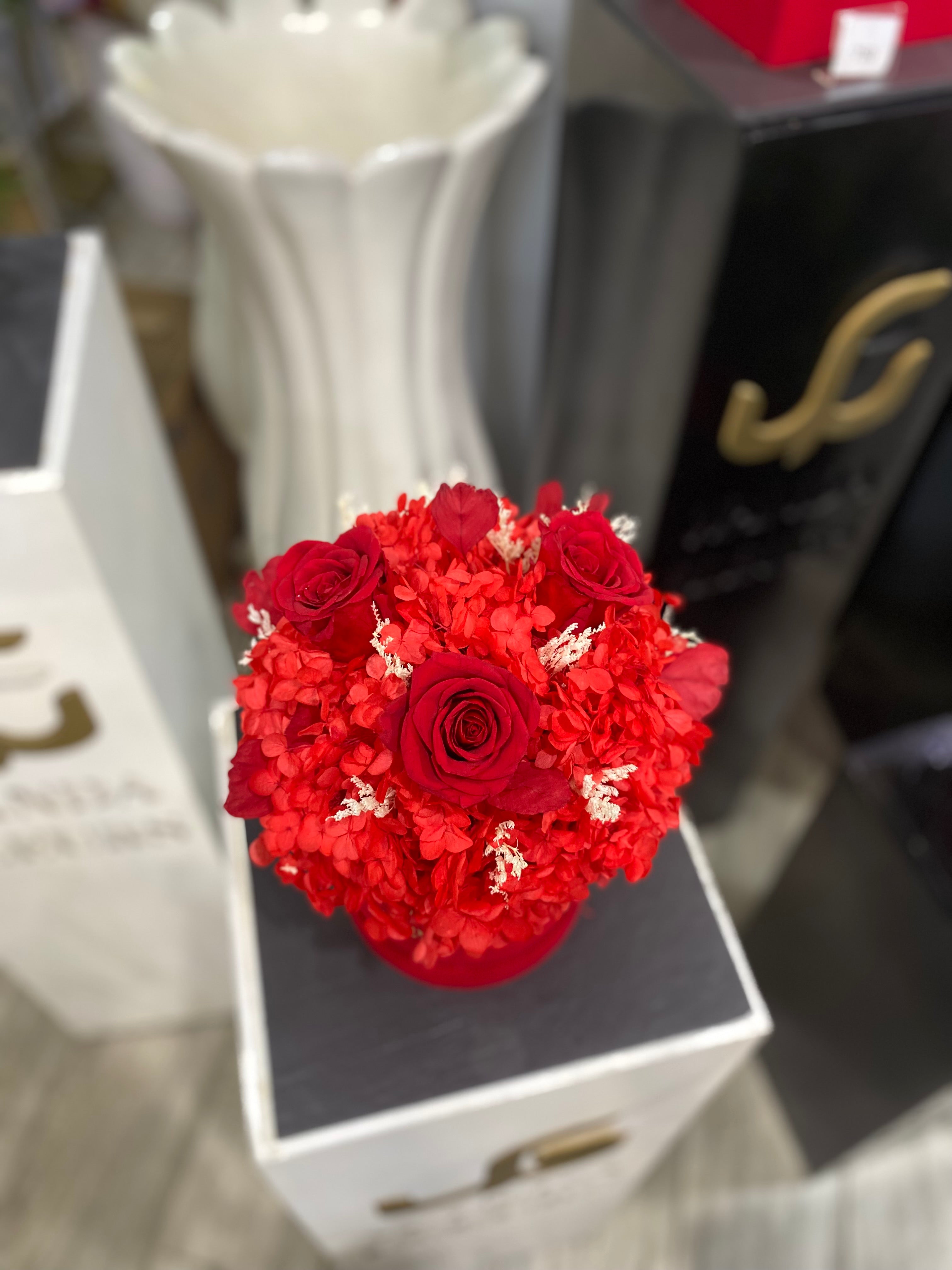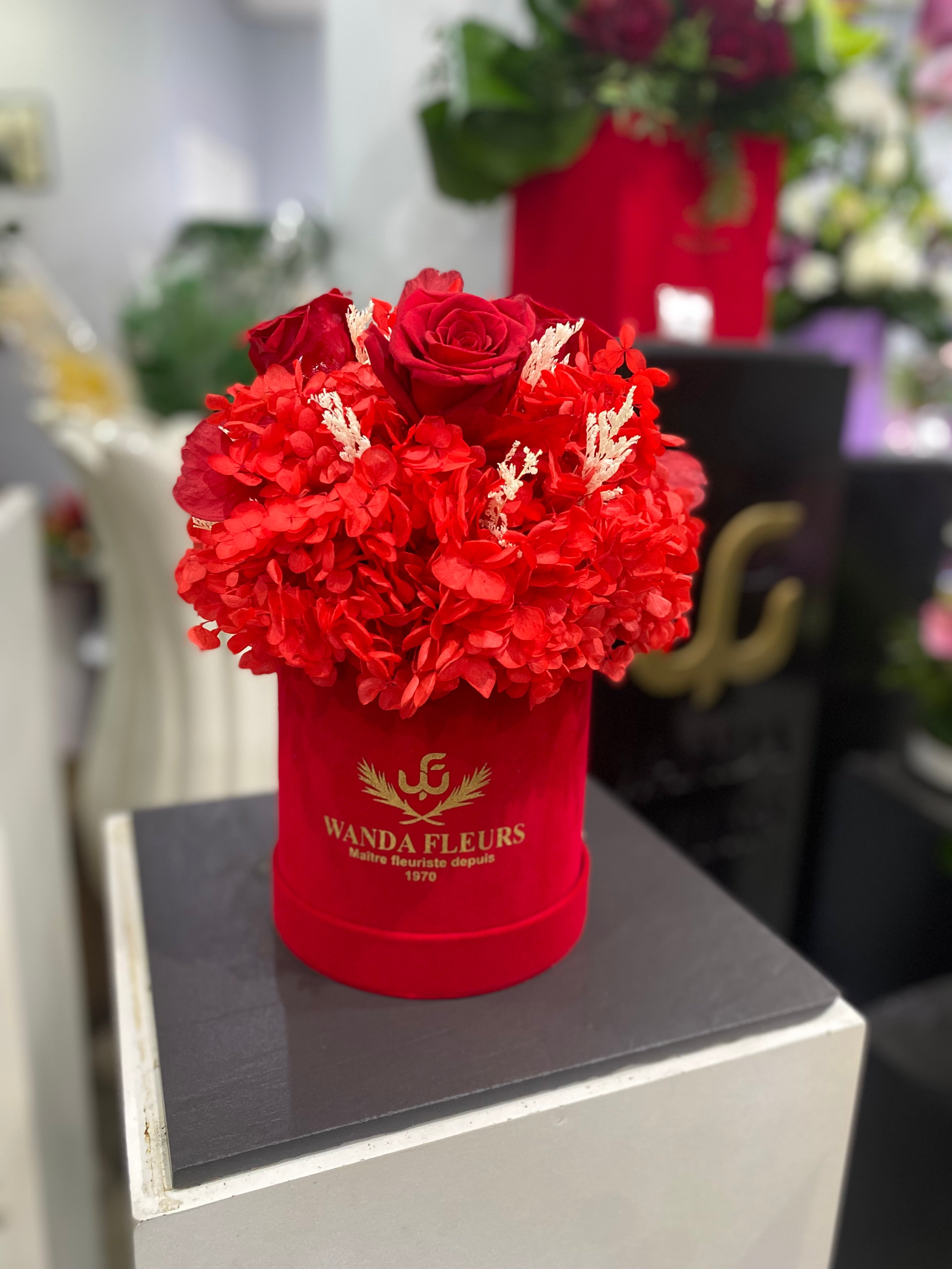 Dôme de fleurs éternelles couleur rouge