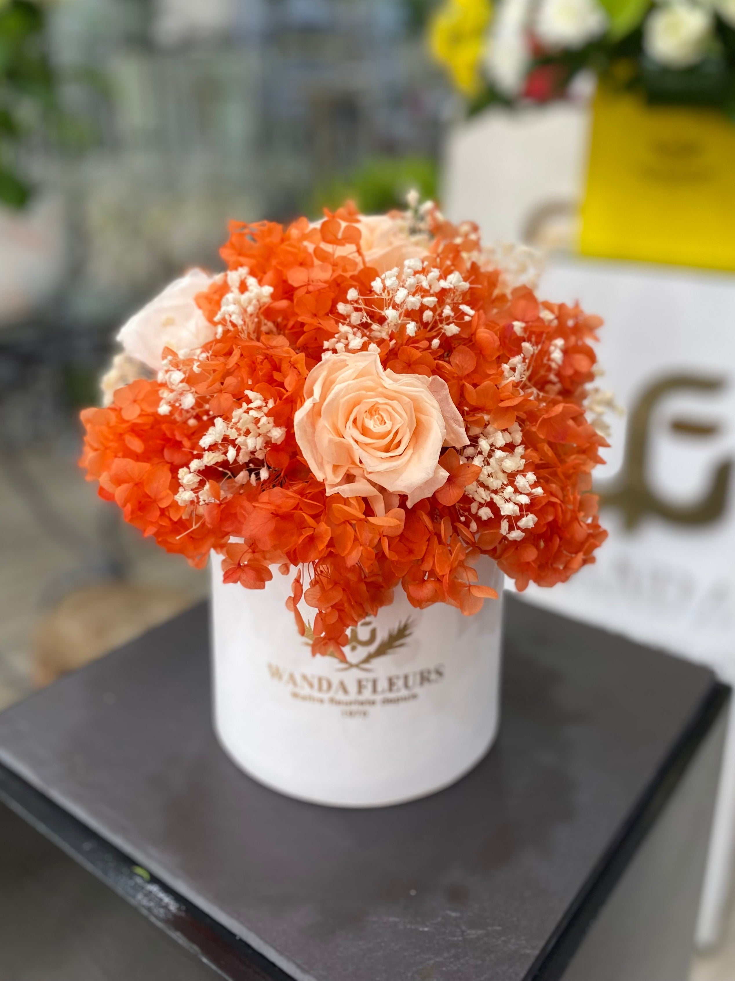 Dôme de fleurs éternelles couleur orange