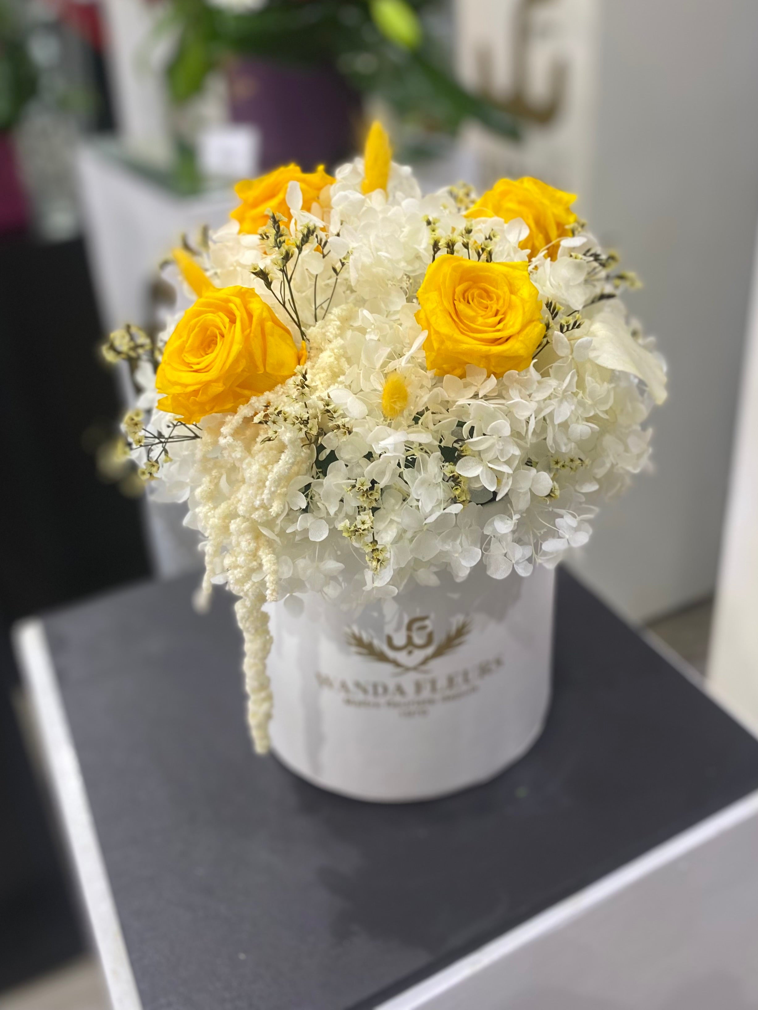 Marre des bouquets de fleurs, vus et revus, qui fanent en quelques jours ? Offrez un cadeau qui sort de l'ordinaire, un symbole durable de votre affection : un bouquet avec de vrais fleurs éternelle . Conçu pour durer des années, ce bouquet est bien plus qu'un simple objet. C'est un rappel constant de votre geste attentionné. Contrairement à un bouquet de fleurs qui fanne au bout de 3 à 4 jours.