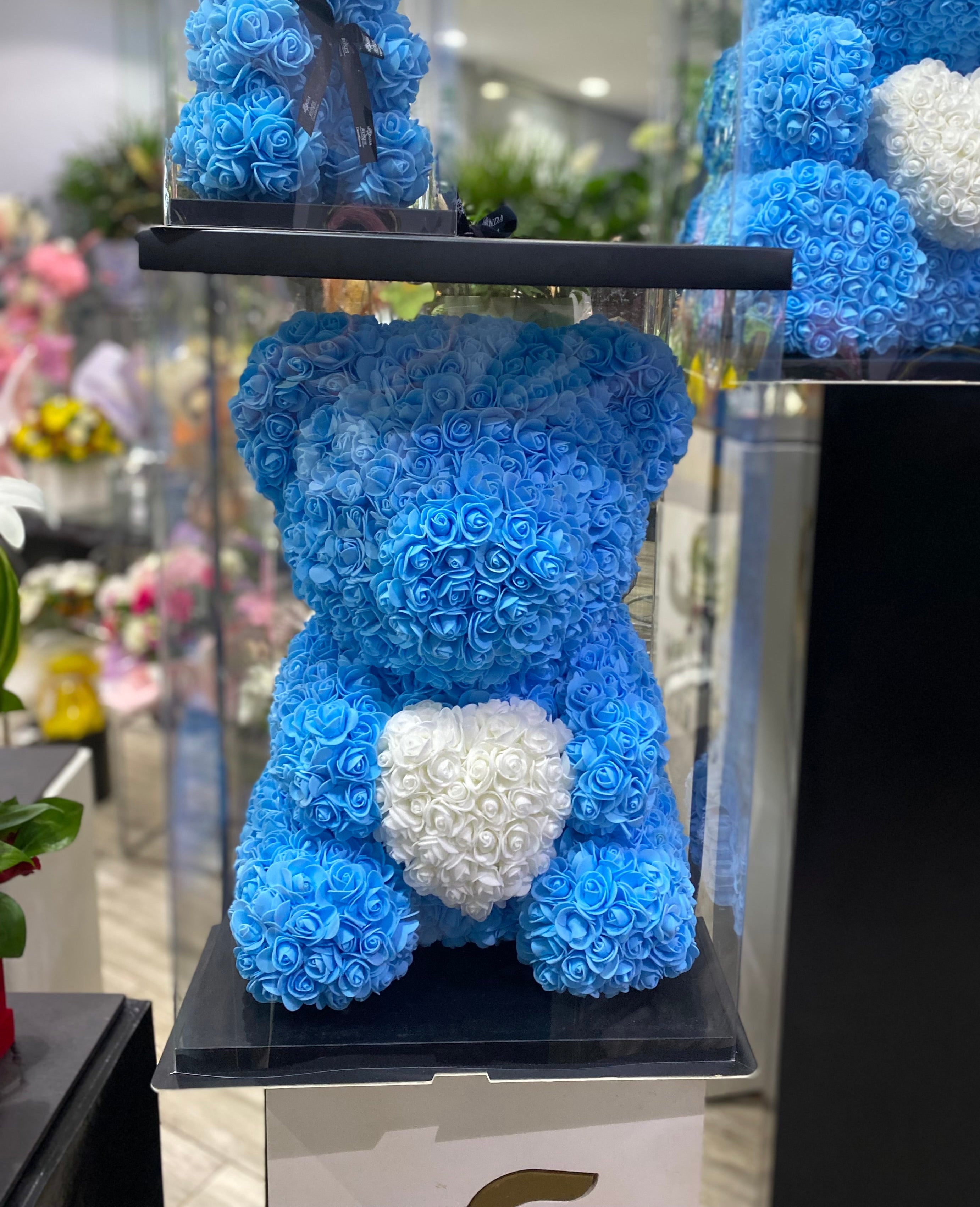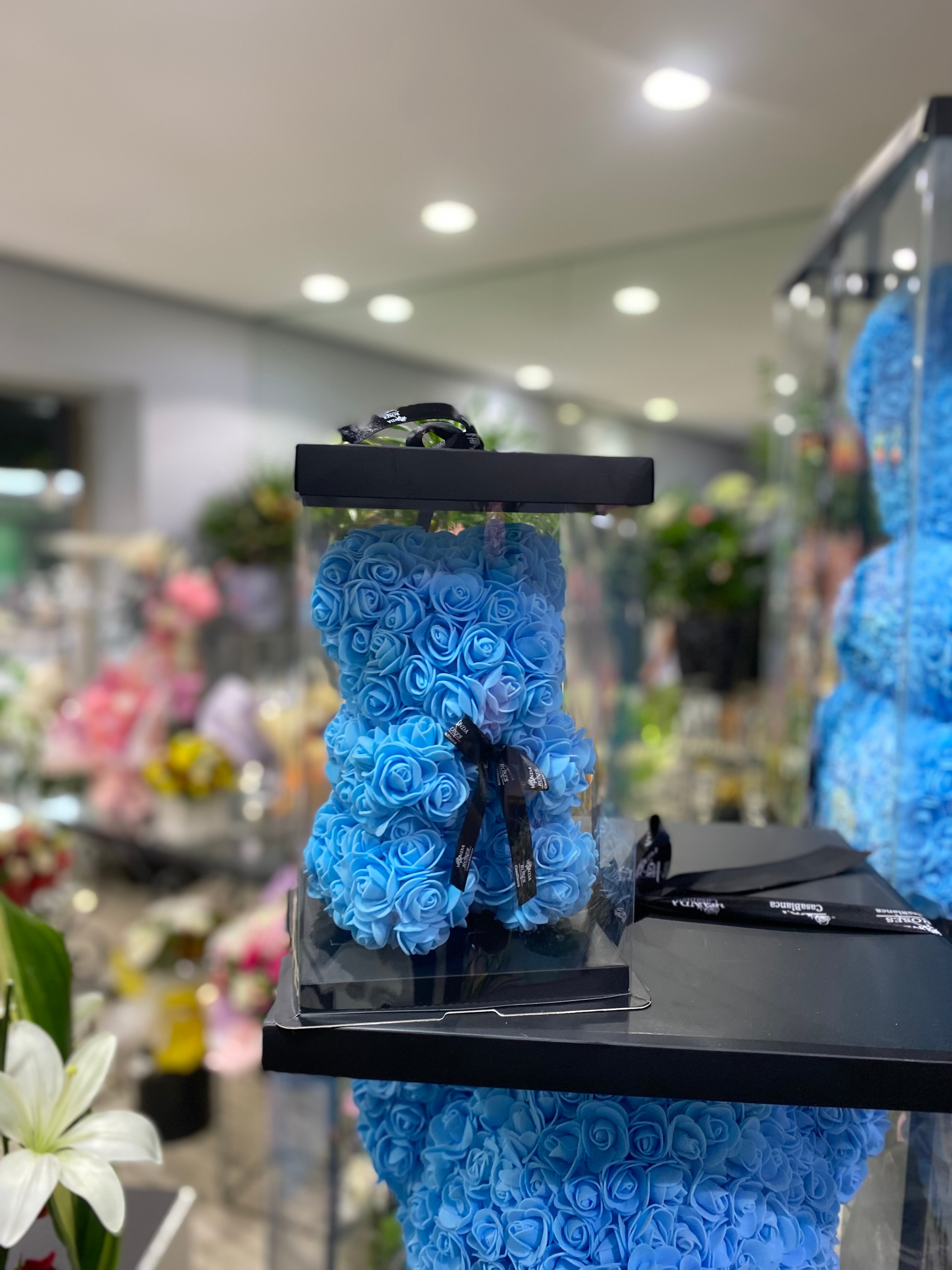 Offrez un cadeau plein de tendresse et d’émotion avec notre ours en roses synthétiques éternelles. Entièrement confectionné à la main, cet ours est composé de roses synthétiques de haute qualité, conçues pour conserver leur beauté durablement, sans entretien.