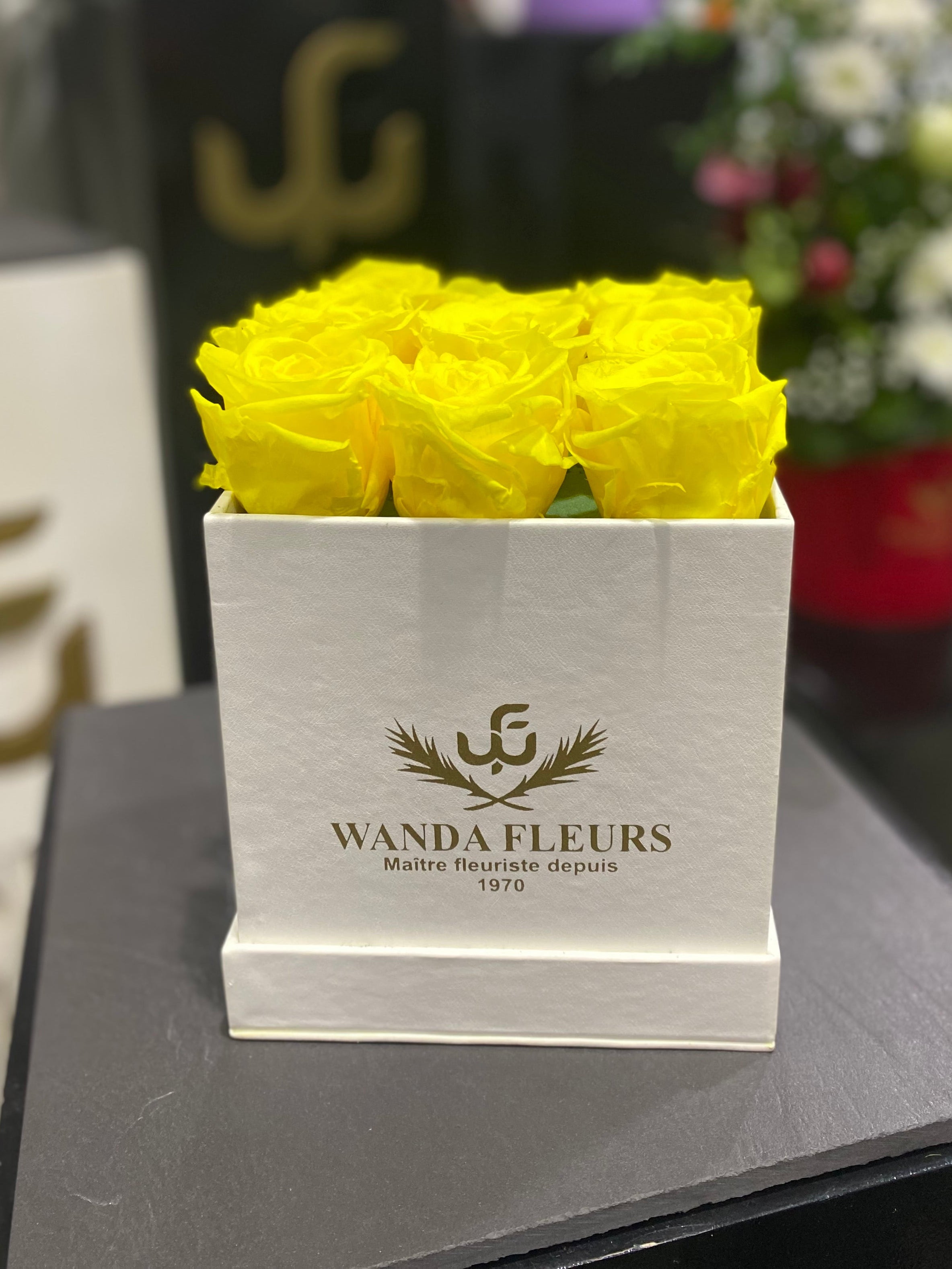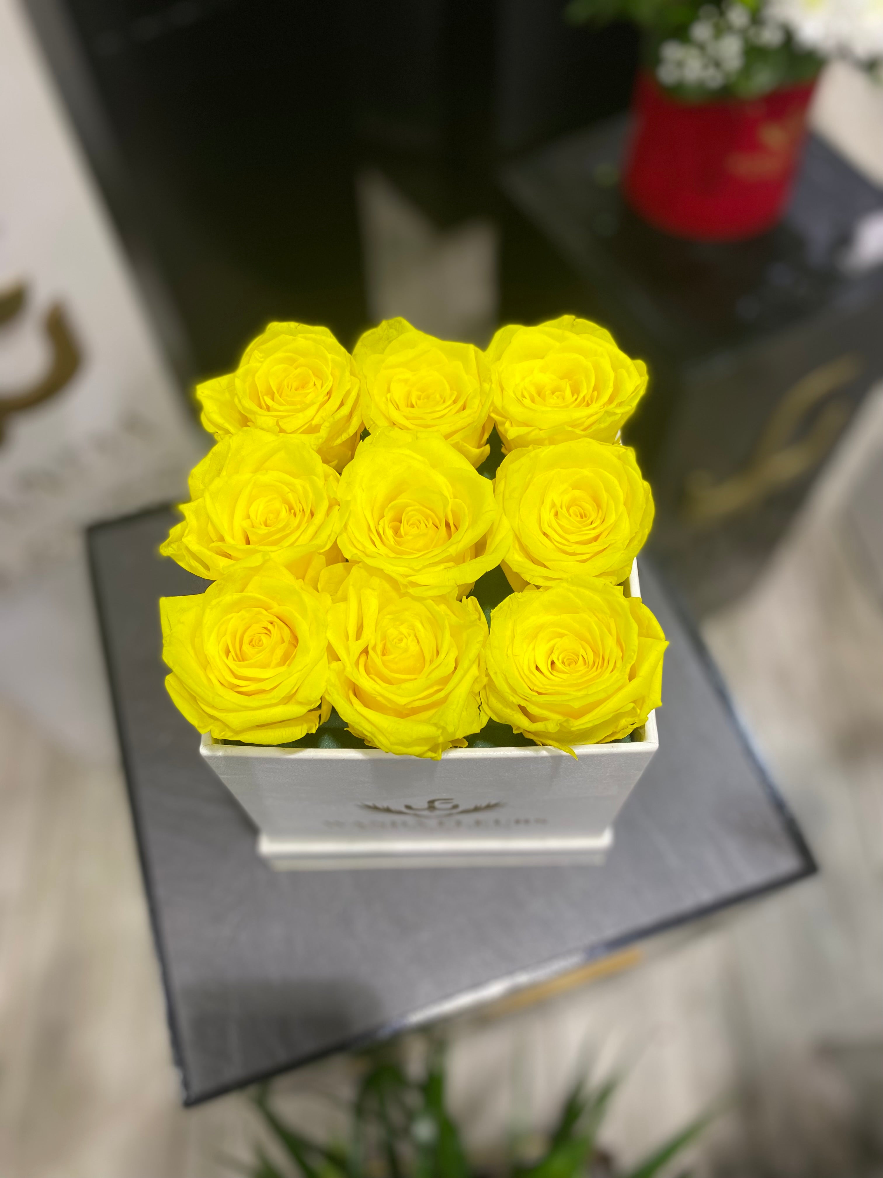 Bouquets carré de rose éterenlle jaune ( L )