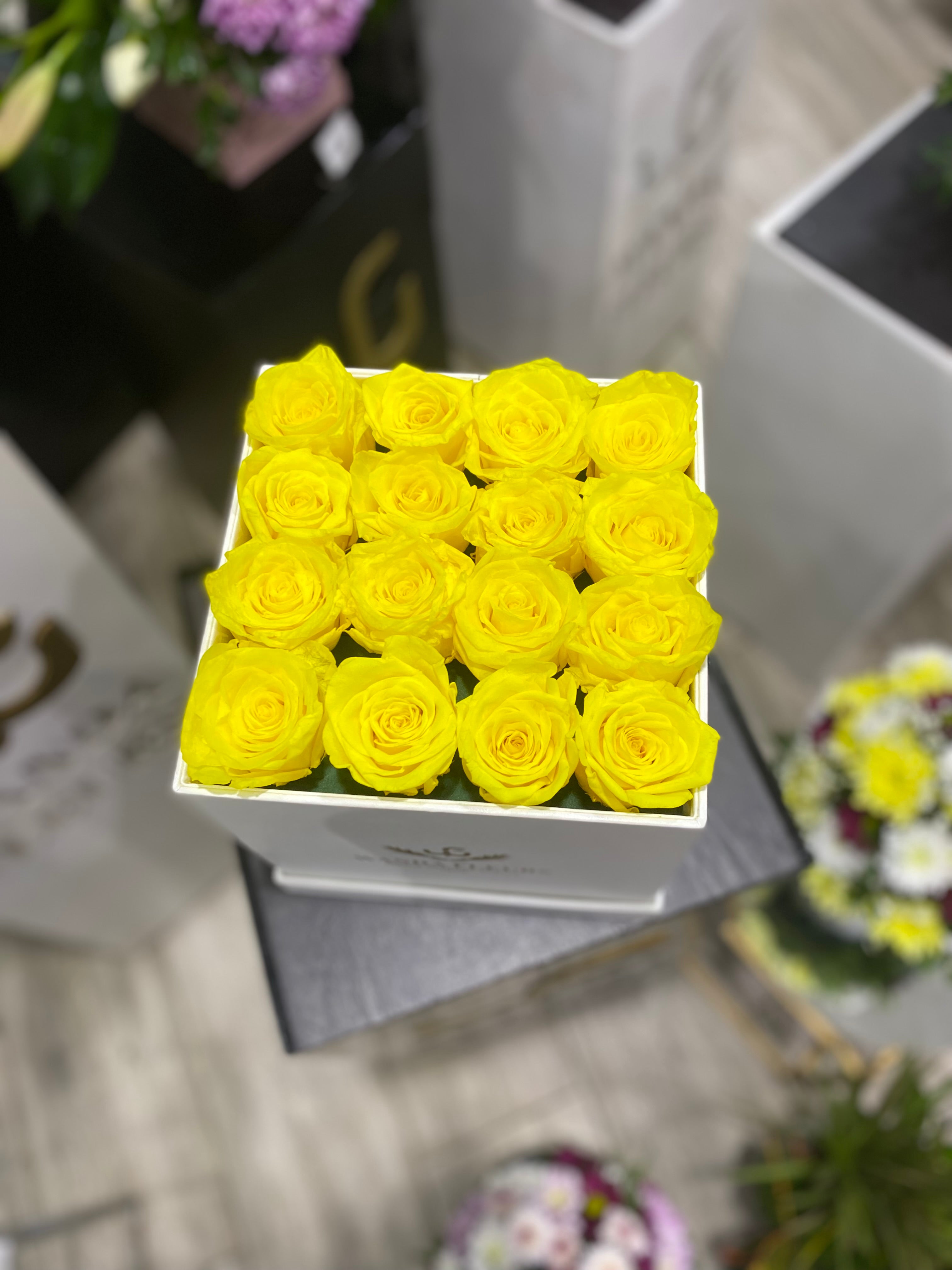 Bouquets carré de rose éterenlle jaune ( XL )