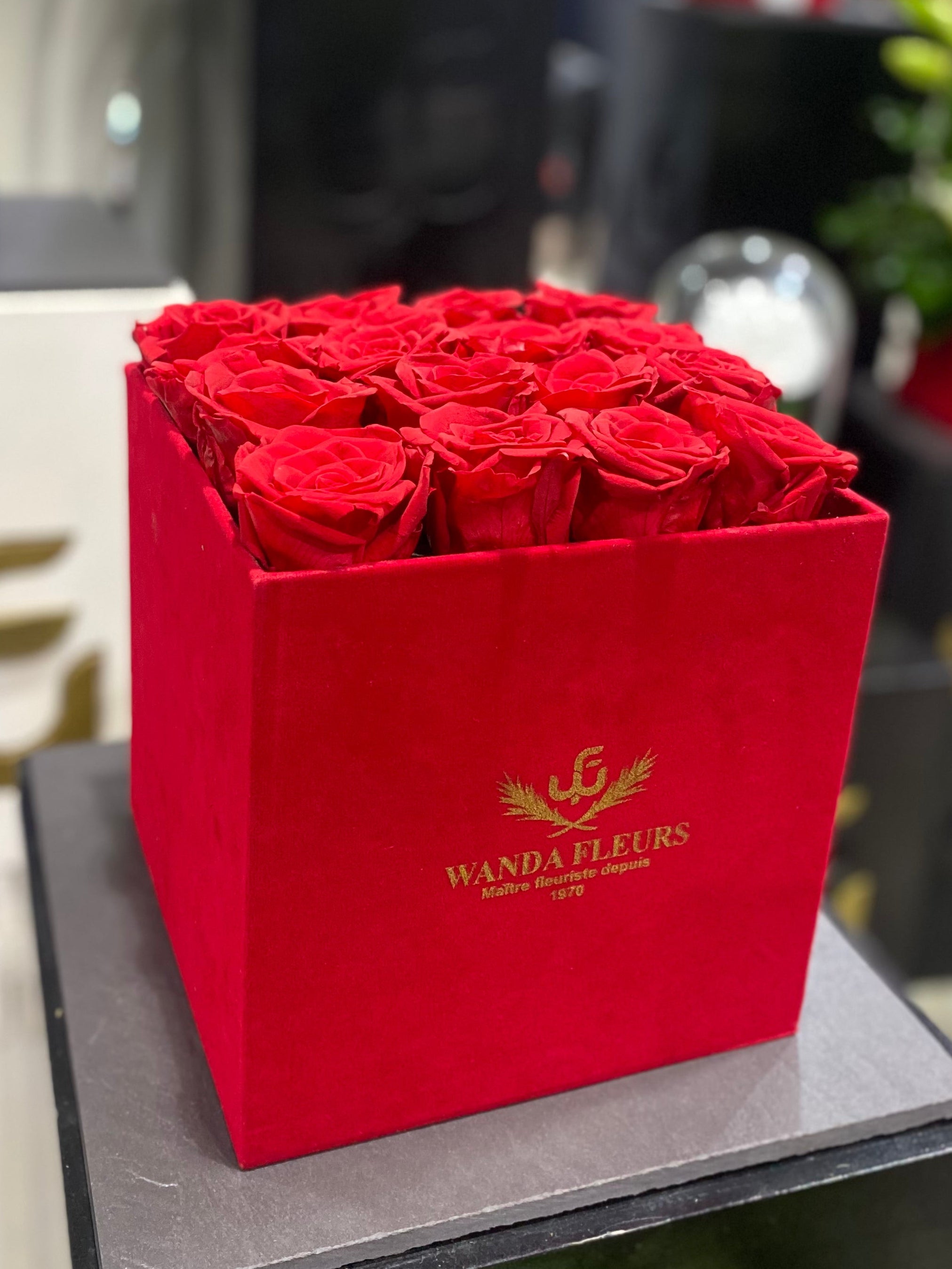 Bouquets carré de rose éterenlle rouge ( XL )